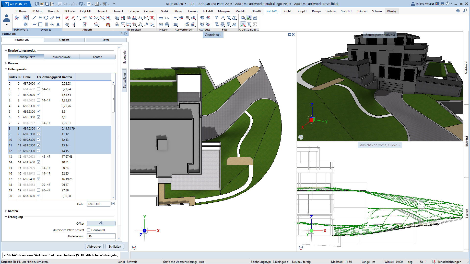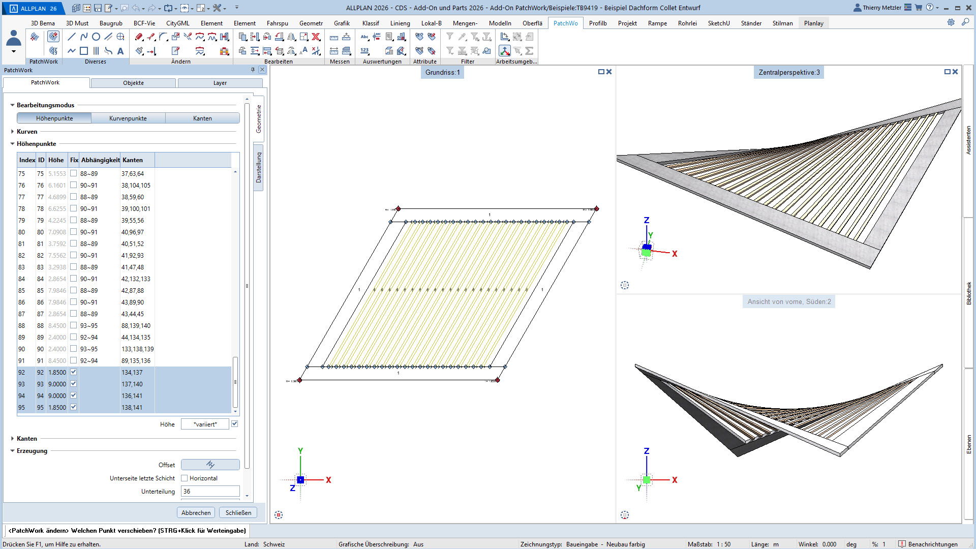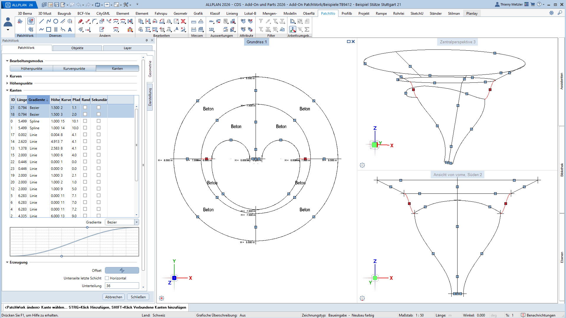 Mit dem ALLPLAN Add-On PatchWork erstellen Sie parametrische 2D- und 3D-Geometrien – intuitiv, flexibel und effizient. Egal, ob Sie 2D-Grundrisse entwerfen, komplexe 3D-Freiformbauteile wie Tragwerksstürze und Dächer modellieren oder Umgebungs- und Freiraumplanungen um Ihr Bauvorhaben umsetzen: PatchWork integriert sich nahtlos in Ihren Workflow.