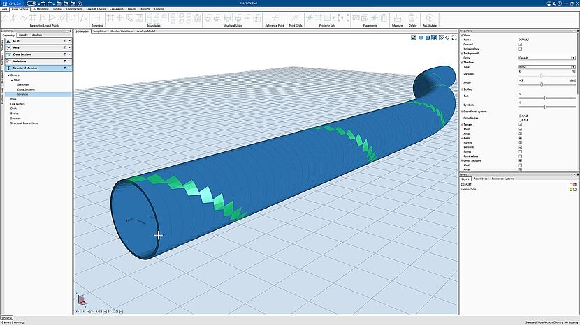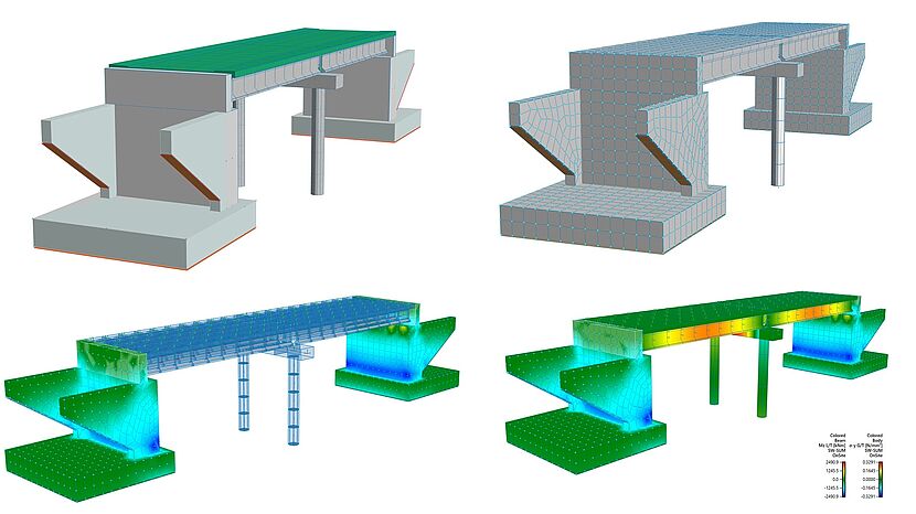 Die integrierte statische Berechnung in ALLPLAN Civil geht über Balken- und Rastermodelle hinaus und bietet nun eine Lösung für die Berechnung von Volumenelementen als Technical Preview. Somit können komplexe Geometrien, lokale Effekte und detaillierte Spannungsverteilungen simuliert werden. Dadurch ist es möglich, die Steifigkeit von Unterbauelementen wie Widerlagern, Pfeilern und Fundamenten in Modellen zu berücksichtigen. Durch die genauere Simulation der Wechselwirkung zwischen Ober- und Unterbau wird eine höhere Genauigkeit und Flexibilität bei der Modellierung erreicht. Zudem wird der Grundstein für weiterentwickelte Analysen in zukünftigen Versionen gelegt.
