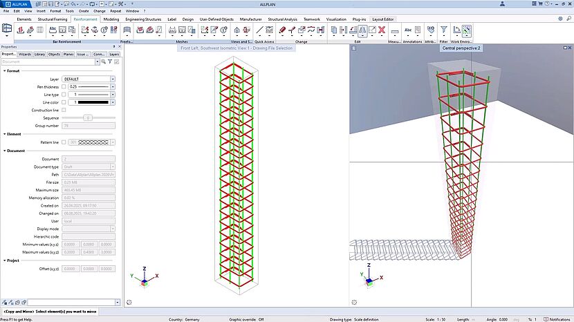 ALLPLAN 2026 führt einen optimierten Reinforcement to Field-Workflow ein, der die Modellierung und Verwaltung von Bewehrungen in Bauprojekten auf ein neues Niveau hebt. Damit werden erstmals vollständig digitale Workflows für Stahlbetonkonstruktionen möglich. Bewehrungen lassen sich direkt in isometrischen Ansichten platzieren, Anwender profitieren von einer verbesserten Attributverwaltung und können Kollisionen selbst bei hoher Stabdichte effizient lösen. Durch die nahtlose Integration dieser Informationen entsteht ein durchgängiger digitaler Prozess vom Detailplan bis auf die Baustelle, der Fehler reduziert, die Produktivität steigert und den Weg ins digitale Bauen deutlich beschleunigt.