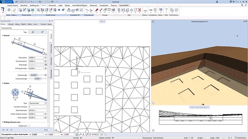 Die optimierte Verwaltung von Erdbewegungen ermöglicht es, Auftrag und Aushub präzise zu definieren, Volumina direkt in der Palette zu visualisieren und während der gesamten Modellierung jederzeit die Kontrolle zu behalten. Der verbesserte Workflow für Spundwände erleichtert die Eckdefinition und erhöht die Präzision bei komplexen Geometrien. Zusätzlich sorgen Performance-Verbesserungen bei der Vorschau von Stützmauern für eine deutlich schnellere und intuitivere Modellierung.