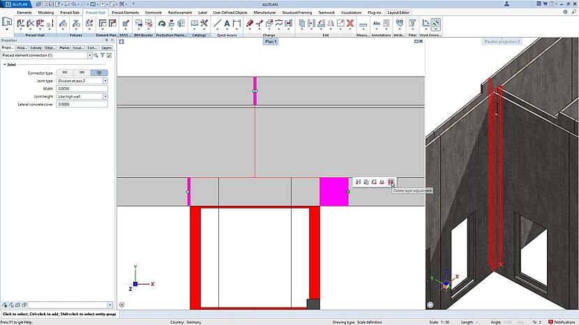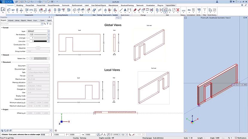 Eine genaue Darstellung, Konsistenz trotz Änderungen sowie automatische und benutzergesteuerte Referenzierungsfunktionen sind unerlässlich, um Übersichtlichkeit und Präzision in der Dokumentation und Visualisierung zu gewährleisten. Diese Funktionen reduzieren Fehler und gewährleisten gleichzeitig Flexibilität und Kontrolle. Lokale Ansichten in ALLPLAN bleiben an Ihren Elementen verankert – auch wenn sich Ihr Modell ändert –, sodass Ihre Elementpläne präzise, korrekt und kristallklar bleiben, unabhängig davon, wie viele Bearbeitungen oder Teilungen Sie vornehmen.