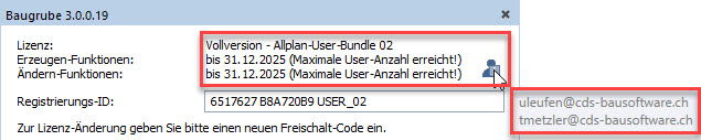 gleichzeitigen Nutzung von z.B. des Add-On Baugrube ist