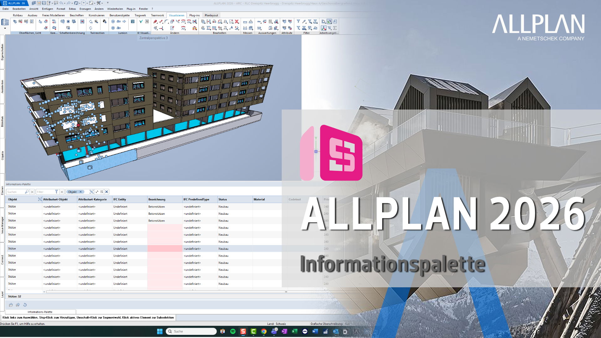 Jeweils zur neuen ALLPLAN Version erstellen wir spezielle Filme die Ihnen die Entwicklungen an Praxisbeispielen zeigen. Somit erhalten Sie einen detaillierten Einblick und finden sich umgehend in der aktuellsten ALLPLAN Version zurecht.
